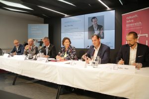 Im Bild v.l.n.r.: z.l.ö-Generalsekretär Ing. Mag. Johann Kofler-Mair, z.l.ö-Vizepräsidentin Bundesspartenobfrau (Handwerk und Gewerbe) Ing. Renate Scheichelbauer-Schuster, z.l.ö-Präsident Generaldirektor DDr. Werner Steinecker, MBA, Prof. Dr. Werner Beutelmeyer (Leiter market institut), z.l.ö.-Gründungsmitglied Mag. Viktor Sigl, MBA[/caption]